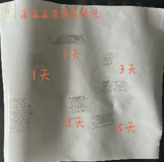 (경화시간은 이형코팅층이 번짐, 벗겨짐, 마이그레이션이 발생하지 않는 최소의 경화시간으로 정의된다.)